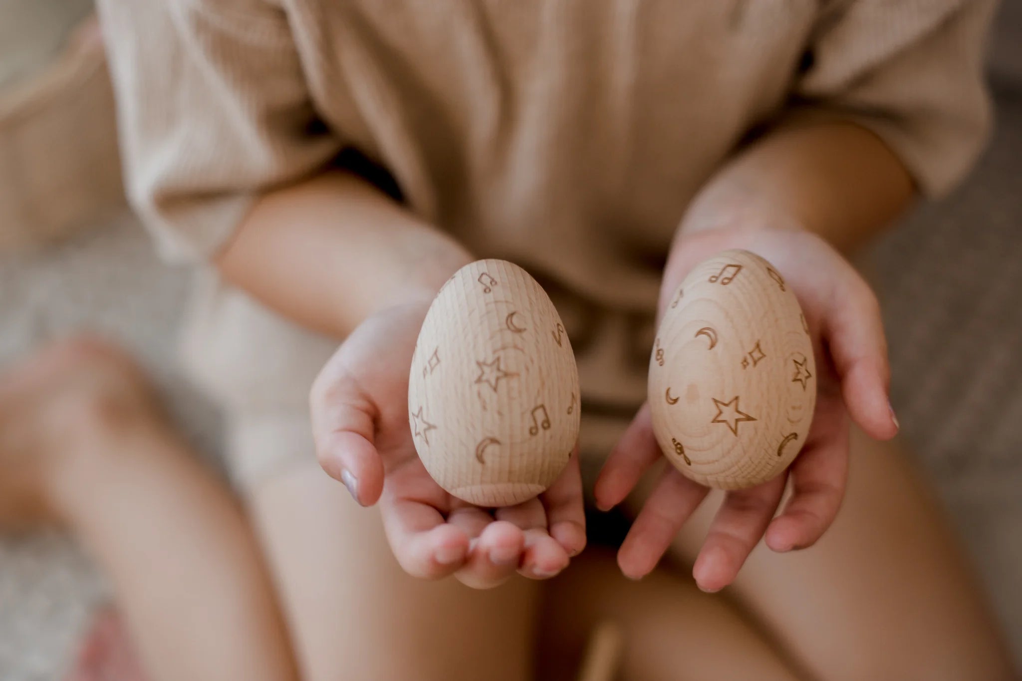 These beautiful egg shakers are lightweight and easy for little hands to grasp.
